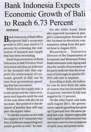 バリ島の経済は好調で、今年も6.7%の成長見込みだとか。