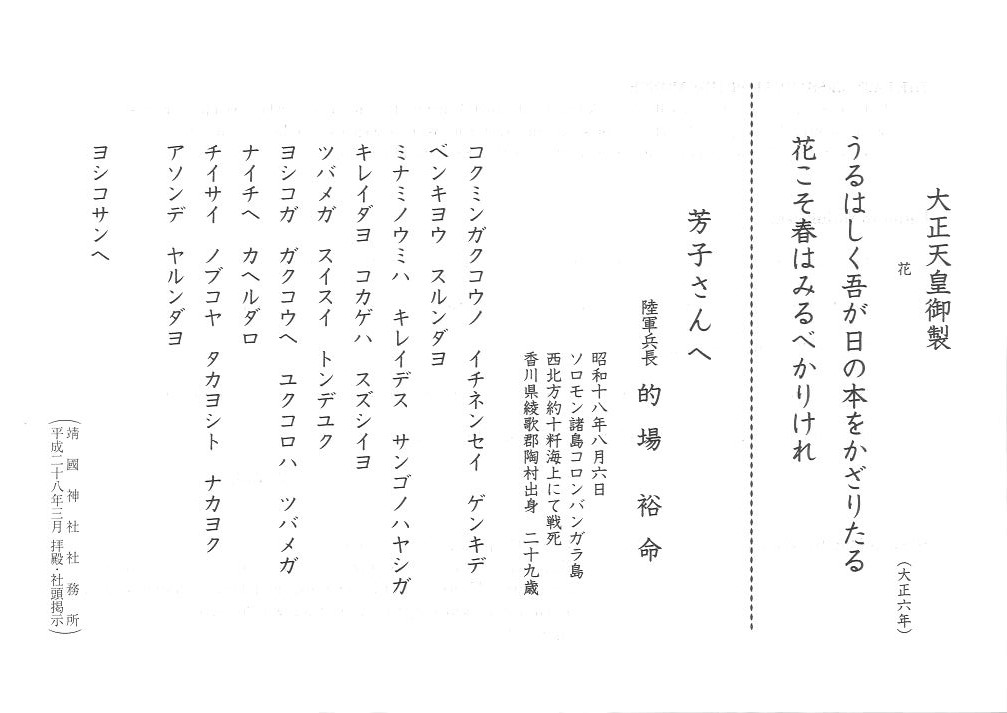 私たちが今を生きていられるのは、英霊たちのおかげです。