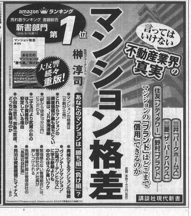 私の本はどういうわけか日経新聞の広告が出るとアマゾン順位が急上昇。