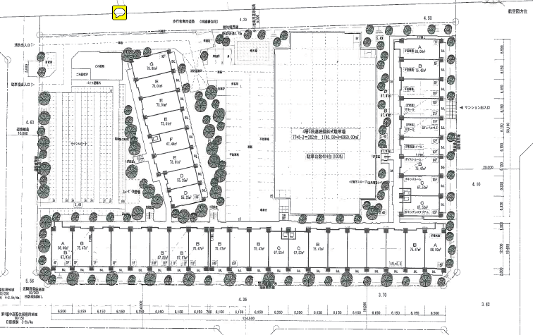 容積を目いっぱい使ってドカン、ドカンと住棟を配置。
