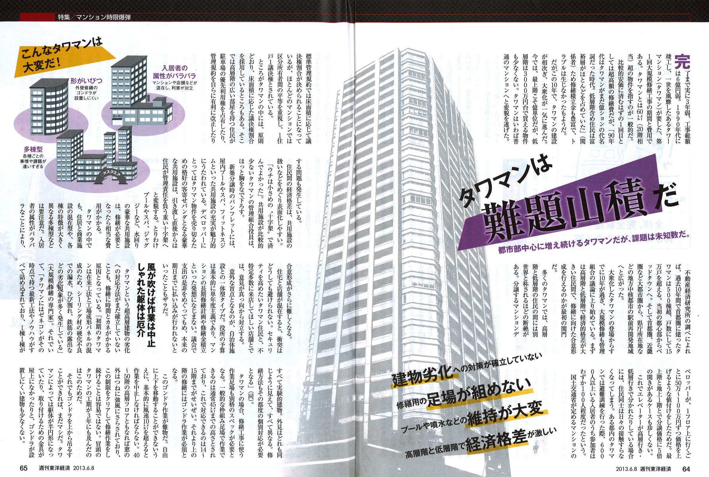 「タワマンにはゼネコンがその時点で持つ最新工法やノウハウがすべて詰め込まれており、1棟1棟がすべて実験的建物。外見はどれも同じように見えて、すべて異なる。修繕方法もその都度個別対応が必要になる」